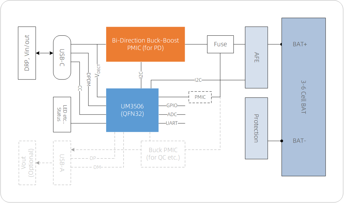 UM3506實現PD DRP協議,電源管理,BMS,并與電動工具通信,確保充放安全